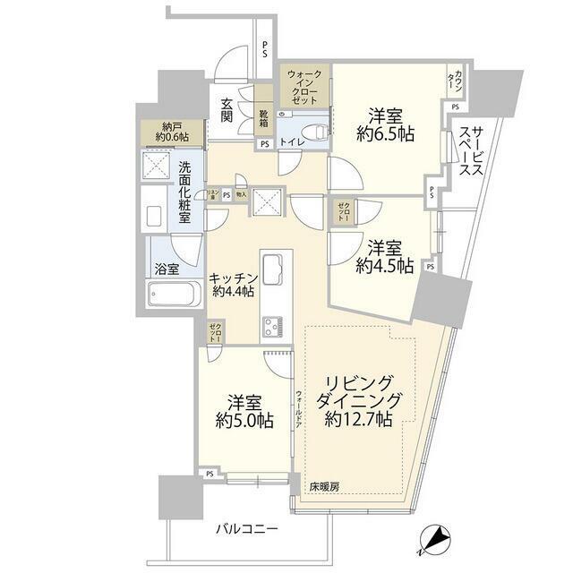 | 間取り内訳 | LD12.7 K4.4 洋6.5 洋5 洋4.5 |