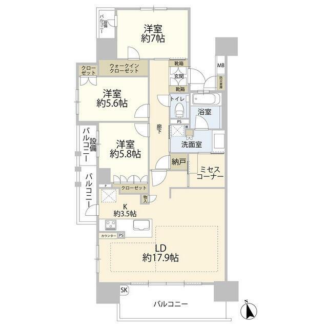 | 間取り内訳 | LD17.9 K3.5 洋7 洋5.8 洋5.6 |