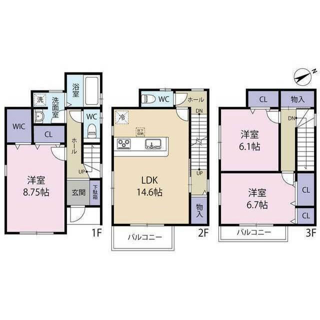 | 間取り内訳 | 洋8.7 LDK14.6 洋6.7 洋6.1 |