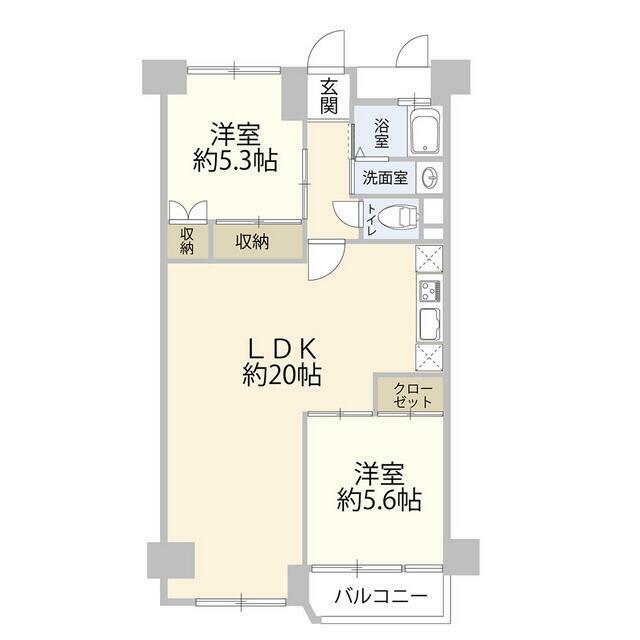 | 間取り内訳 | LDK20 洋5.6 洋5.3 |