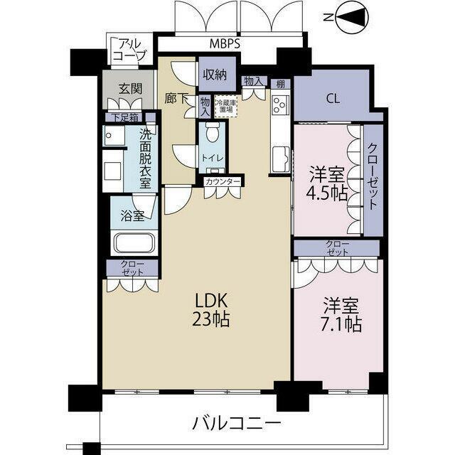 | 間取り内訳 | LDK23 洋7.1 洋4.5 |